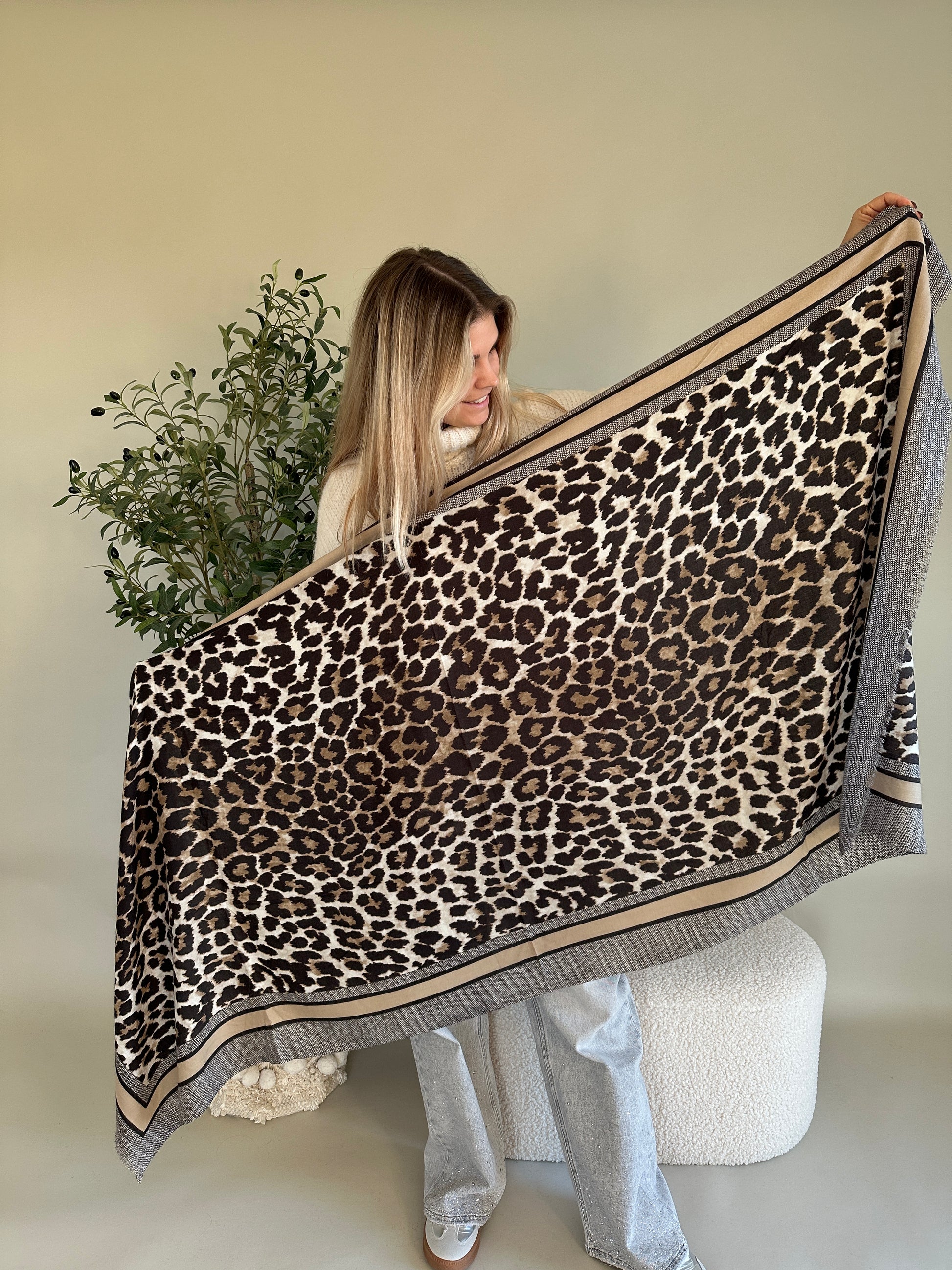 Schal mit Leomuster in Schokobraun