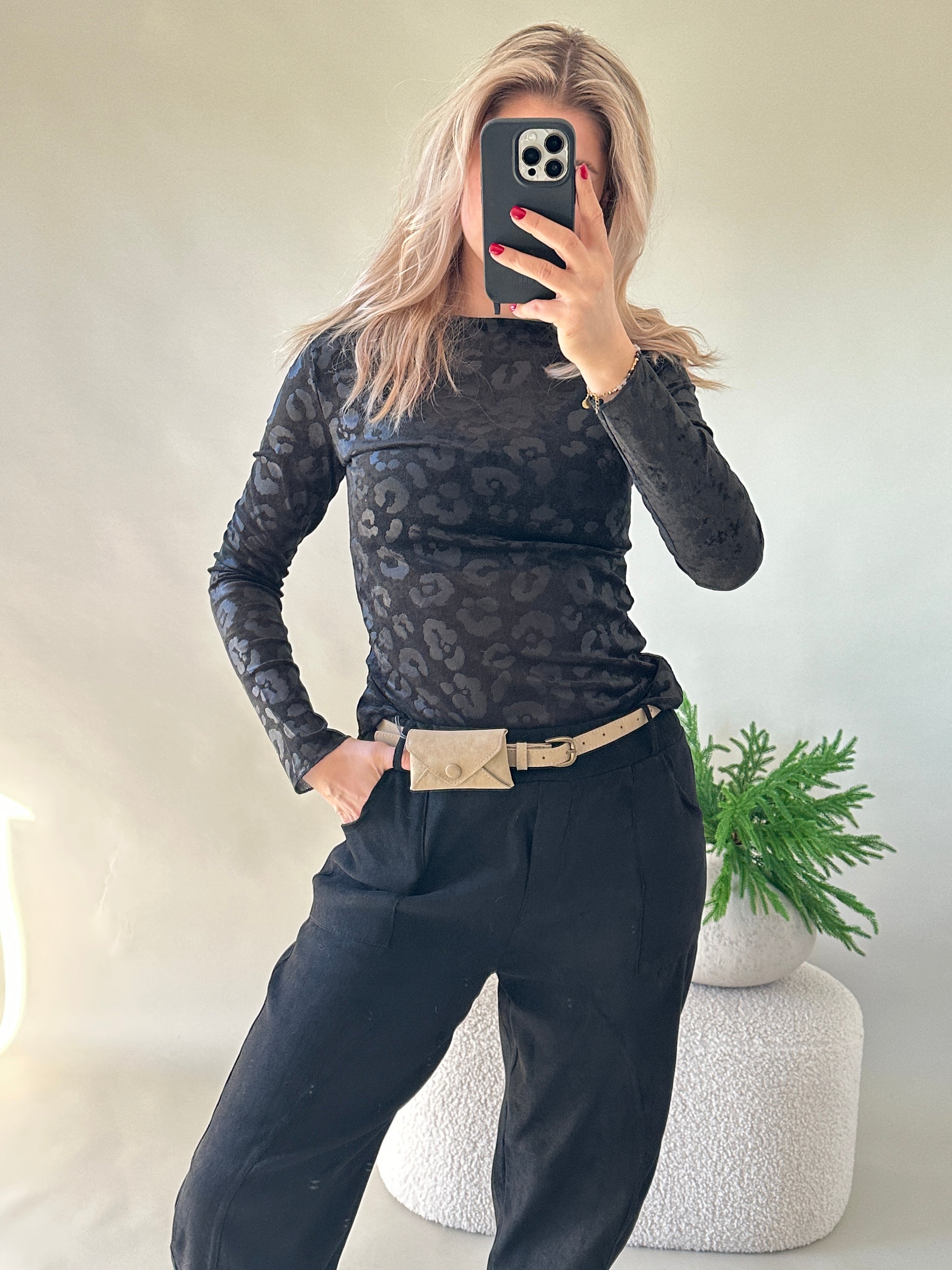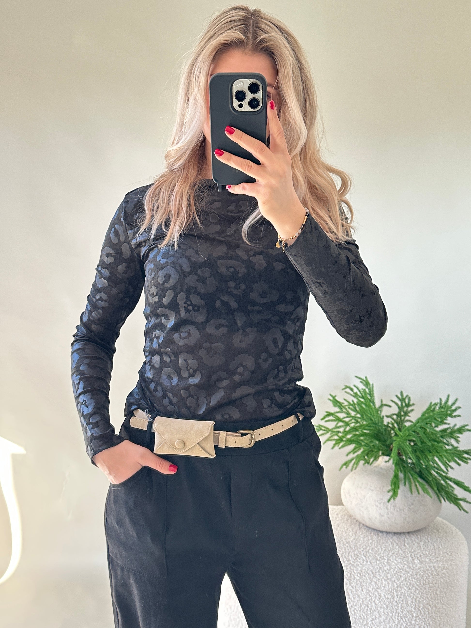Shirt in Schwarz mit Leo-Muster