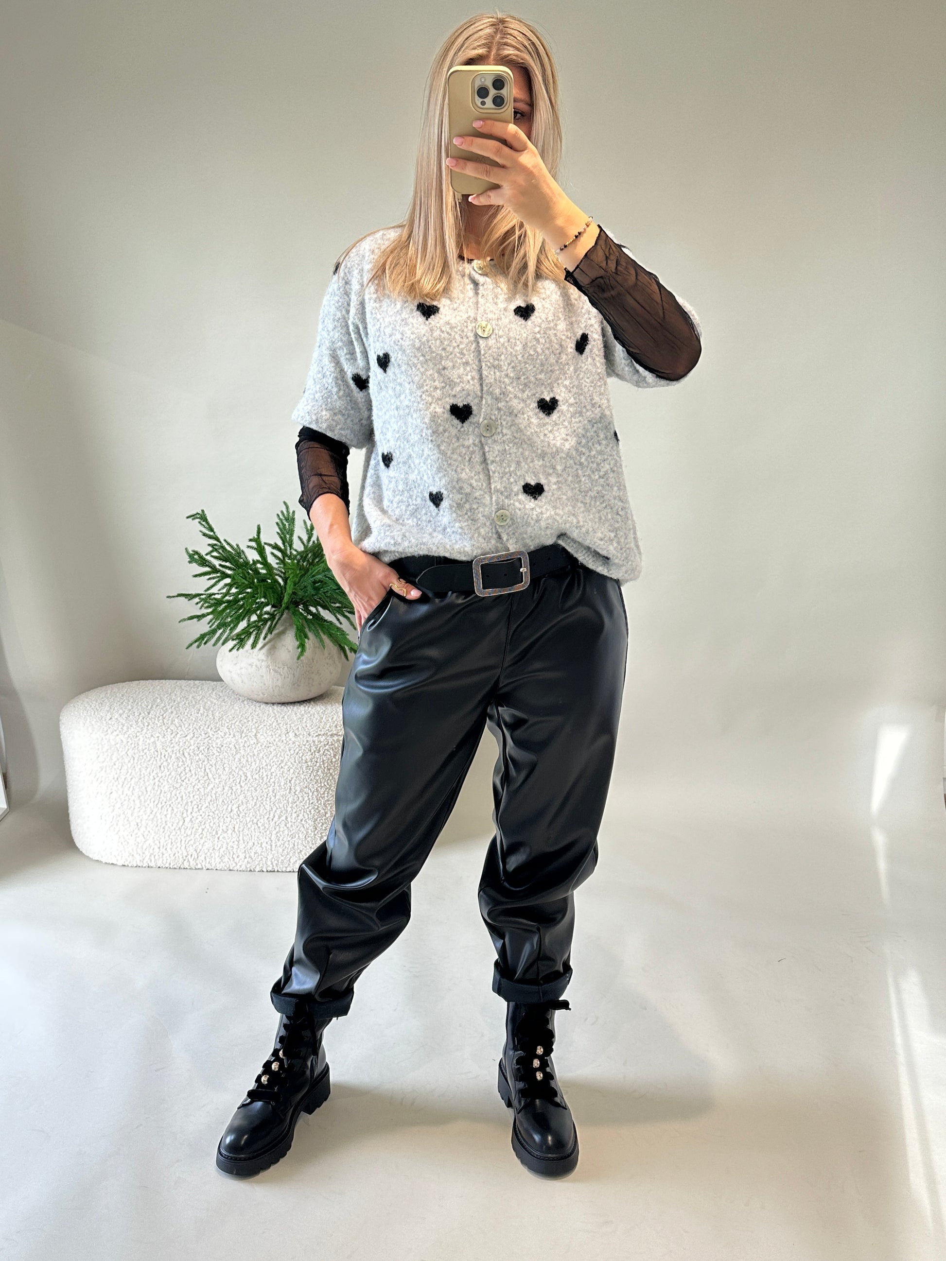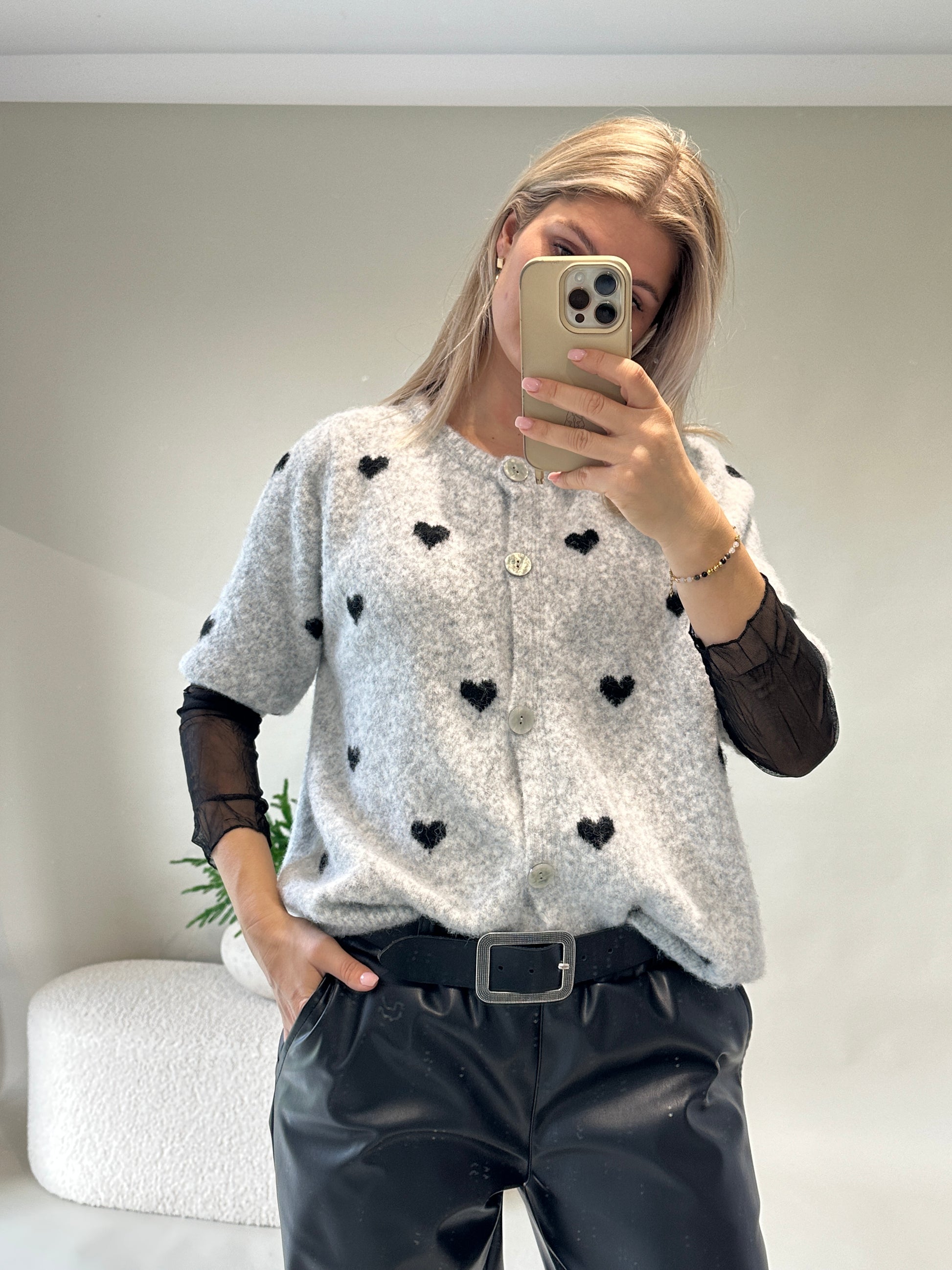 Strickjacke in Hellgrau mit Schwarzen Herzen (Kurzarm)