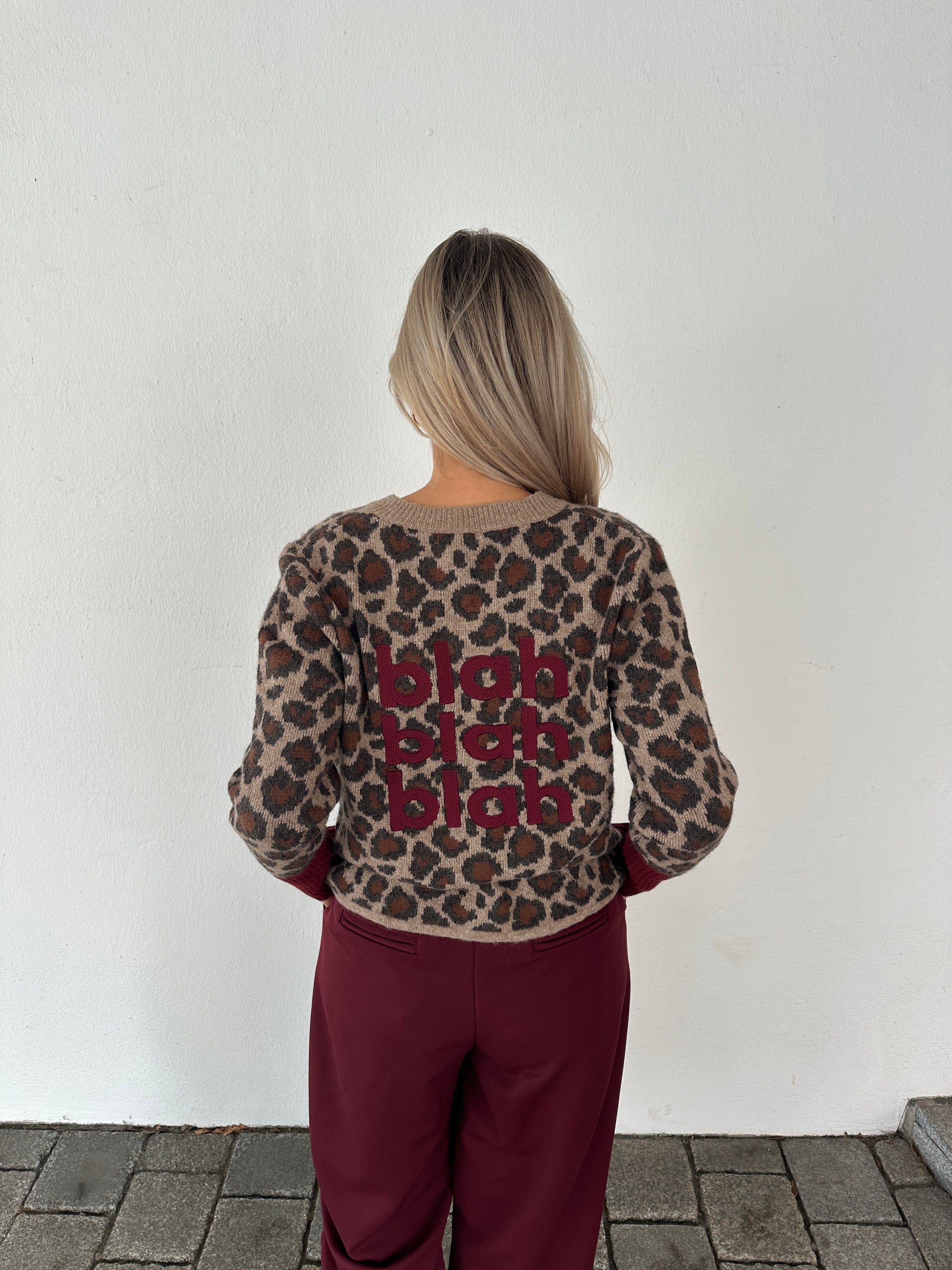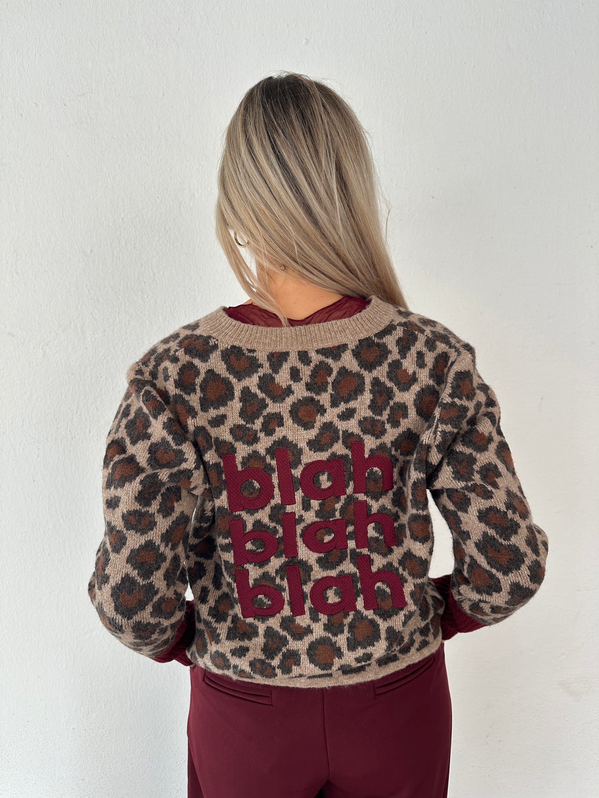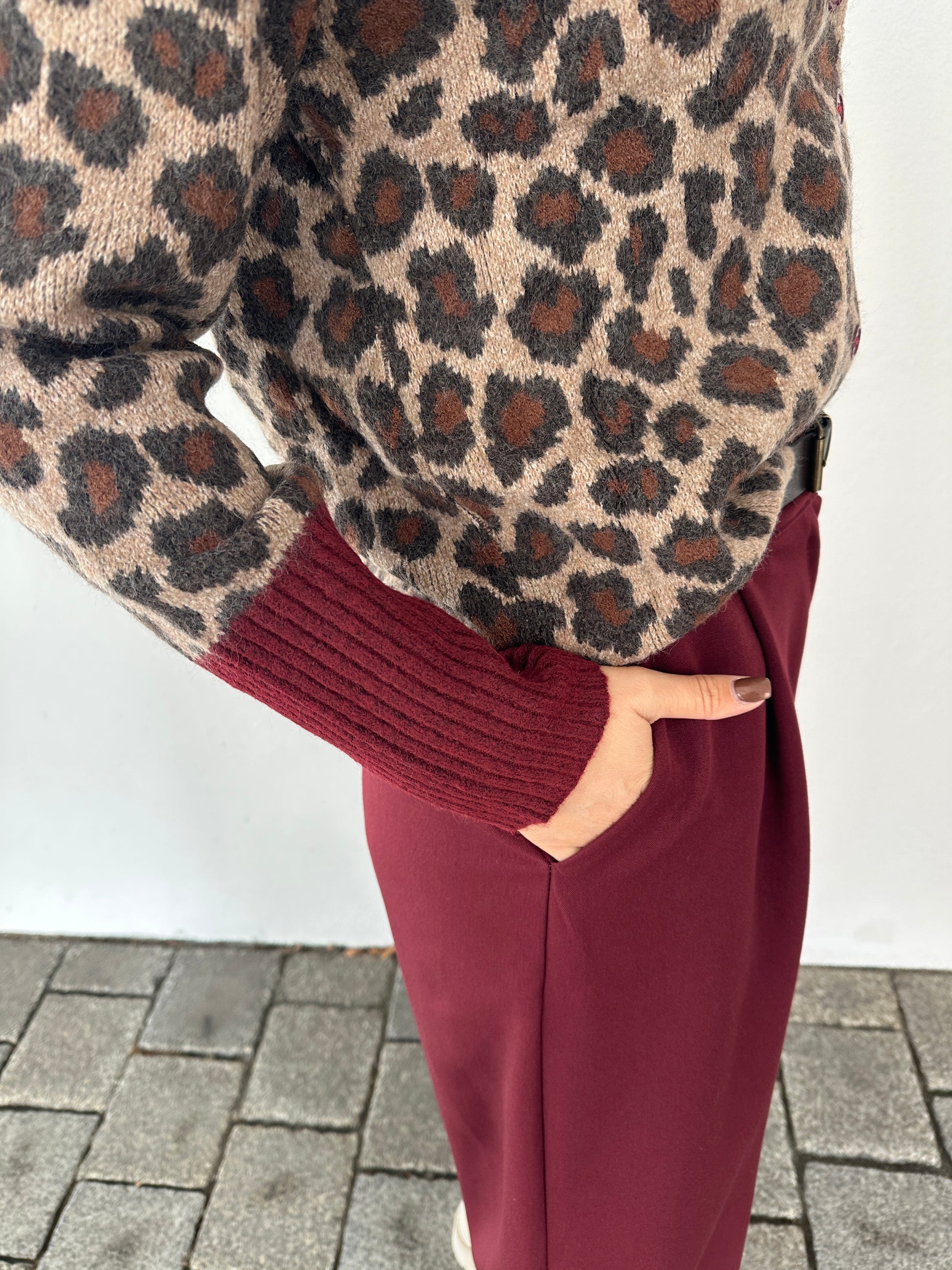 Strickjacke mit Leo-Muster Braun/Beige/Bordeaux