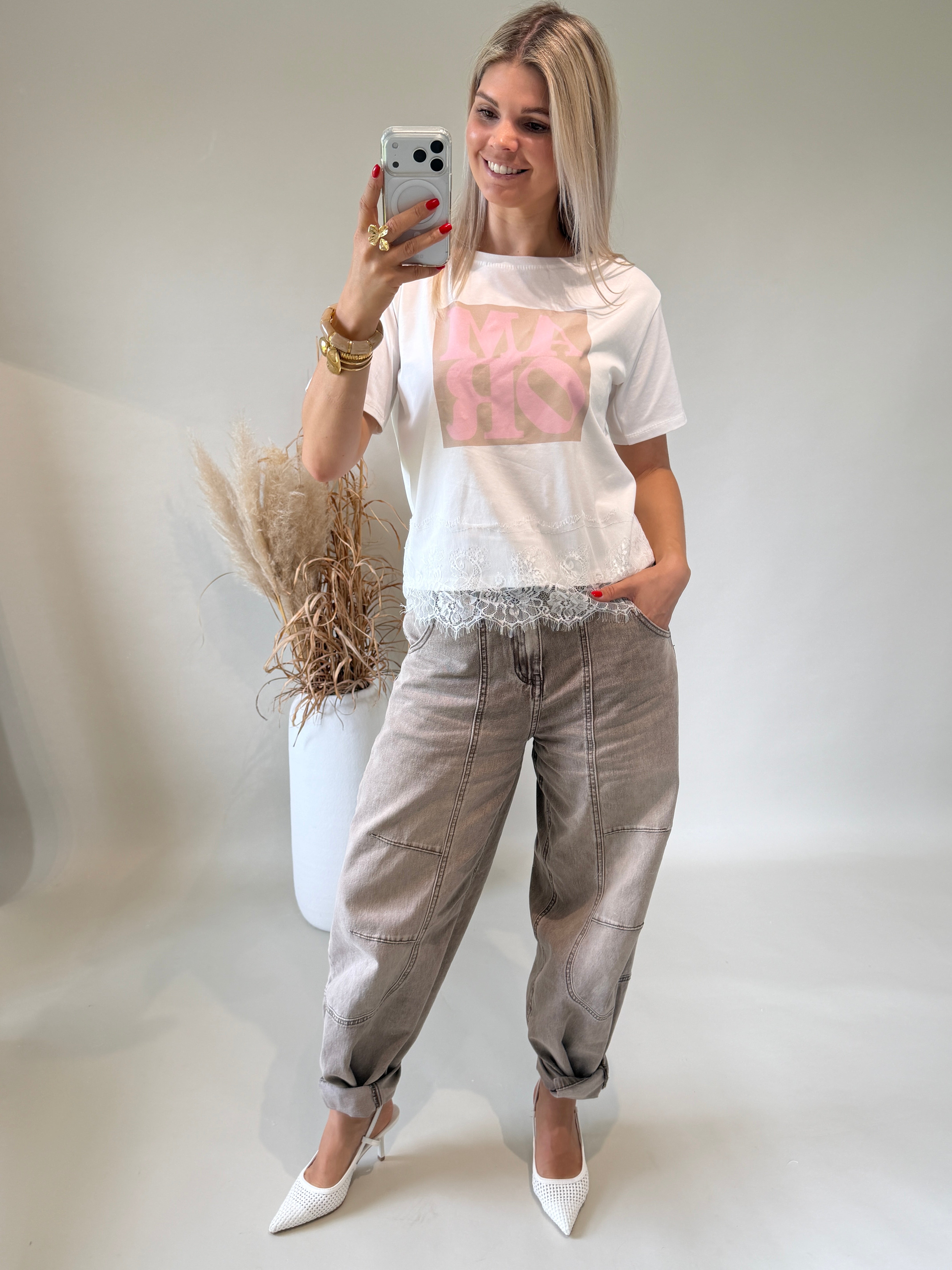 T - Shirt in Weiß mit Aufdruck in Rosa AMOR