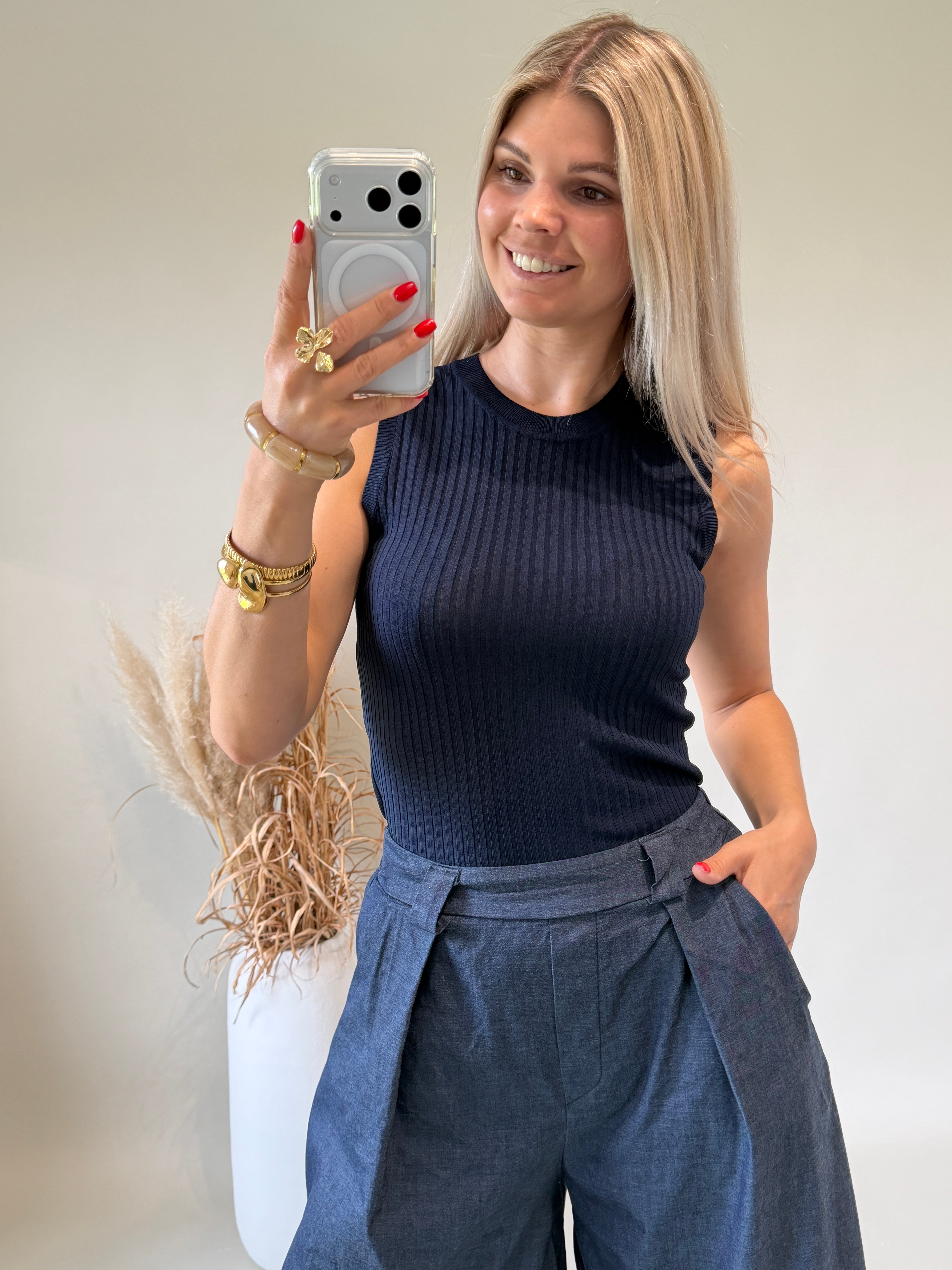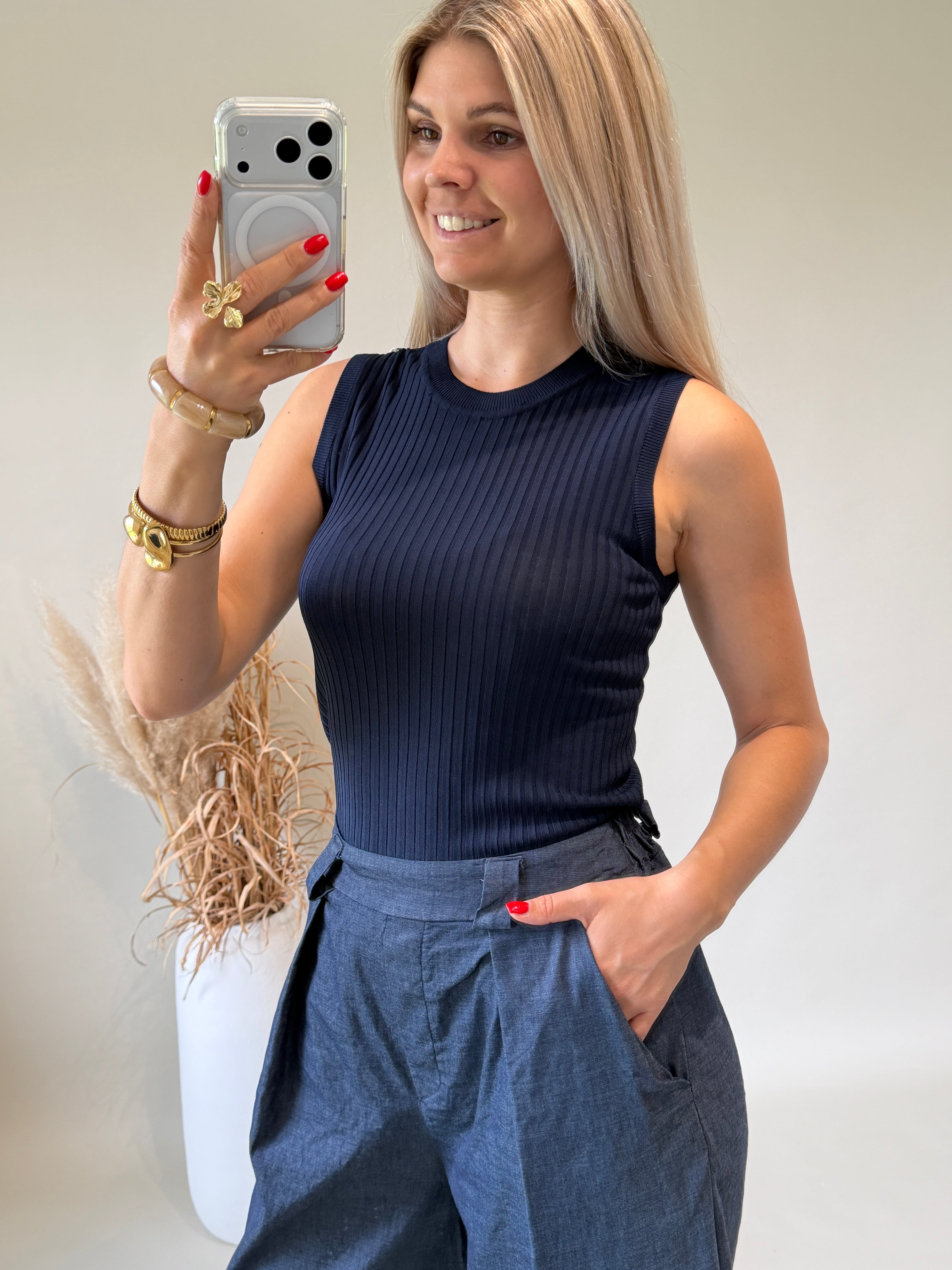 Top in Dunkelblau leichter Strick