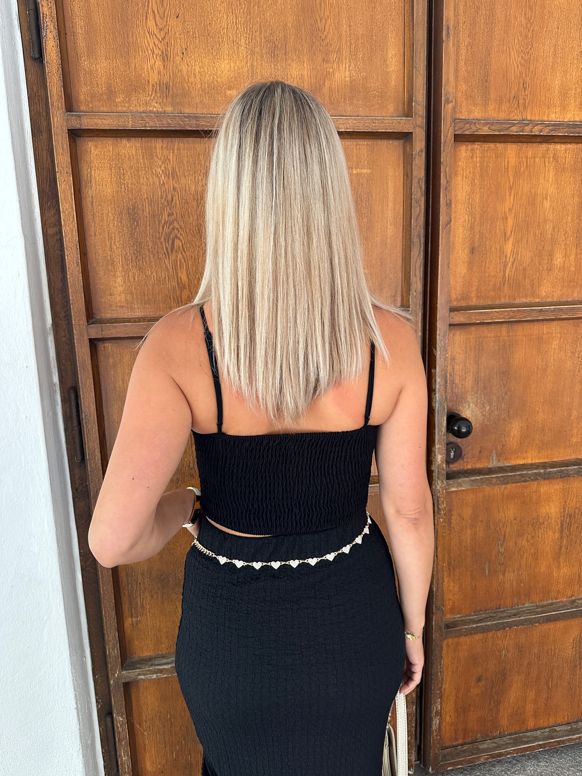 Top in Schwarz mit 2 goldenen Spangen und dünnen Trägern (Bauchfrei)